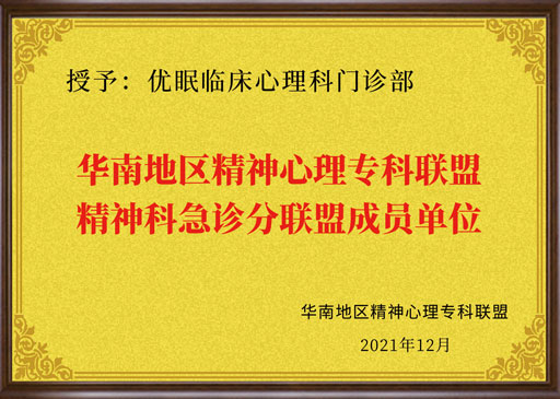 优眠临床心理荣誉资质