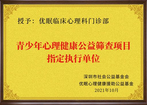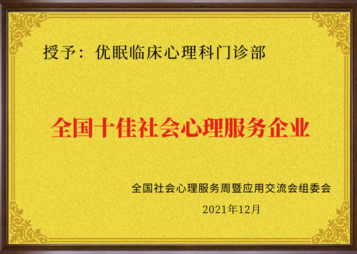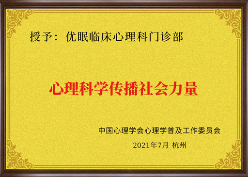 优眠临床心理荣誉资质