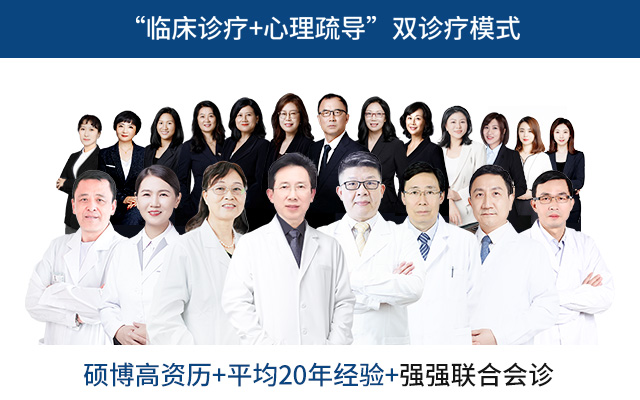医学团队拥有主任医师、副主任医师、主治医师、主治中医师等专业人员60余名。并常年邀请国内三甲医院精神心理知名专家长期亲诊、会诊。